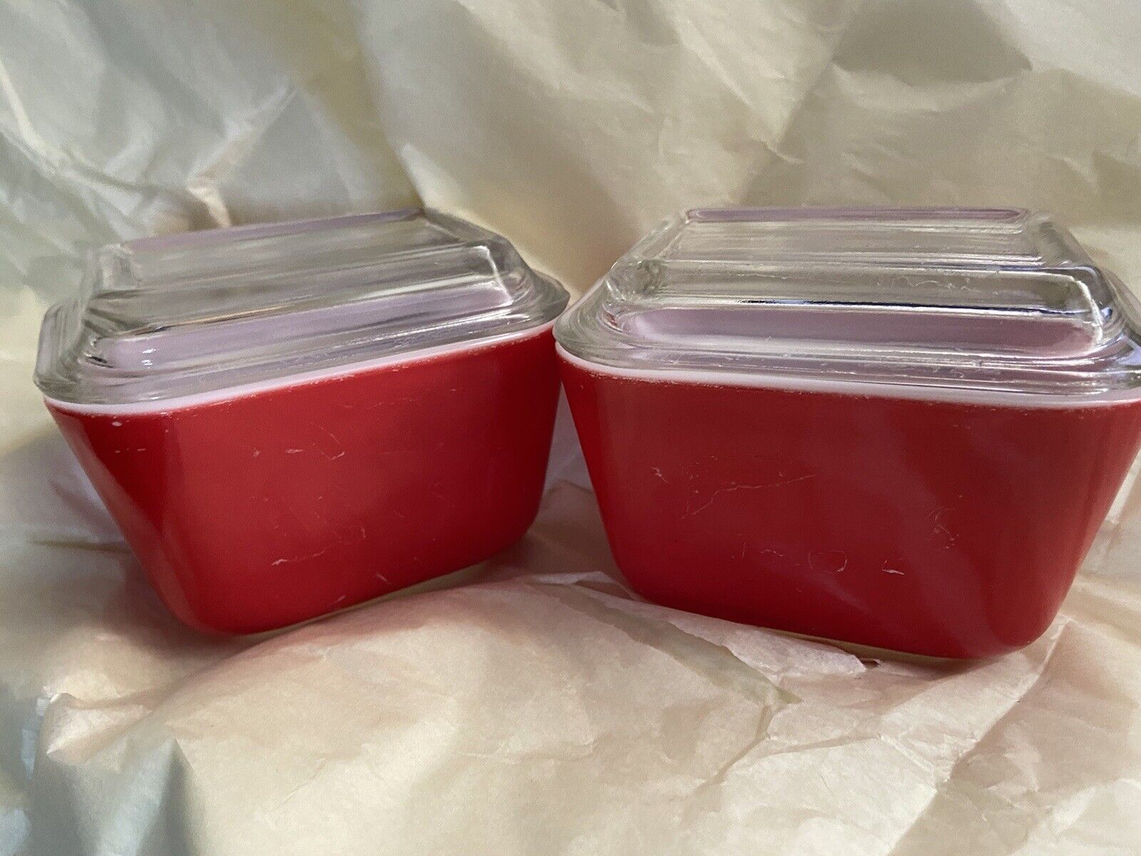 Lot of 2 Vintage Pyrex Scarlet Red Refrigerator Dish w/Lid 0501 EUC B2F