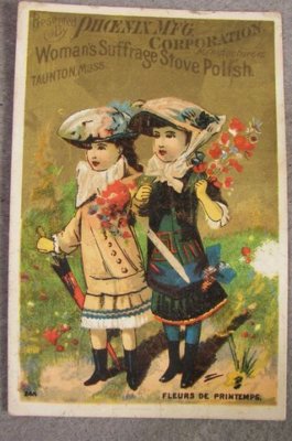 Title (ebay affiliate link): VINTAGE 1883 WOMEN'S SUFFRAGE STOVE POLISH TRADECARD