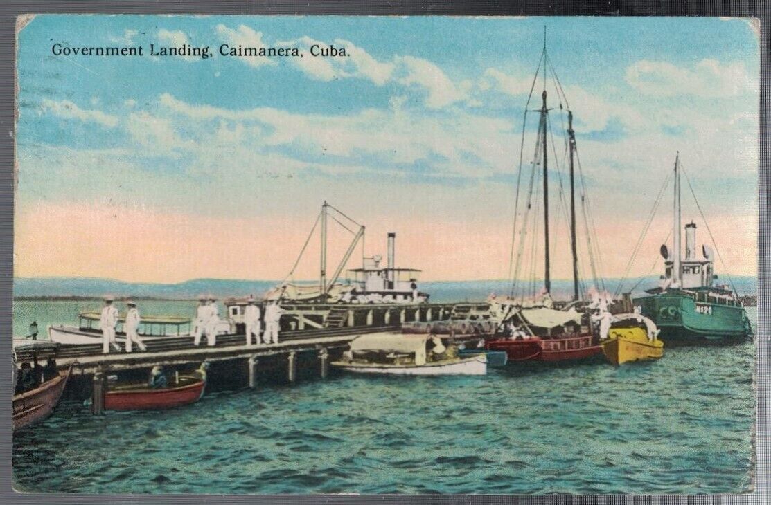 ANTIQUE GOVERNMENT LANDING PIER SAILORS BOATS CAIMANERA CUBA POSTCARD