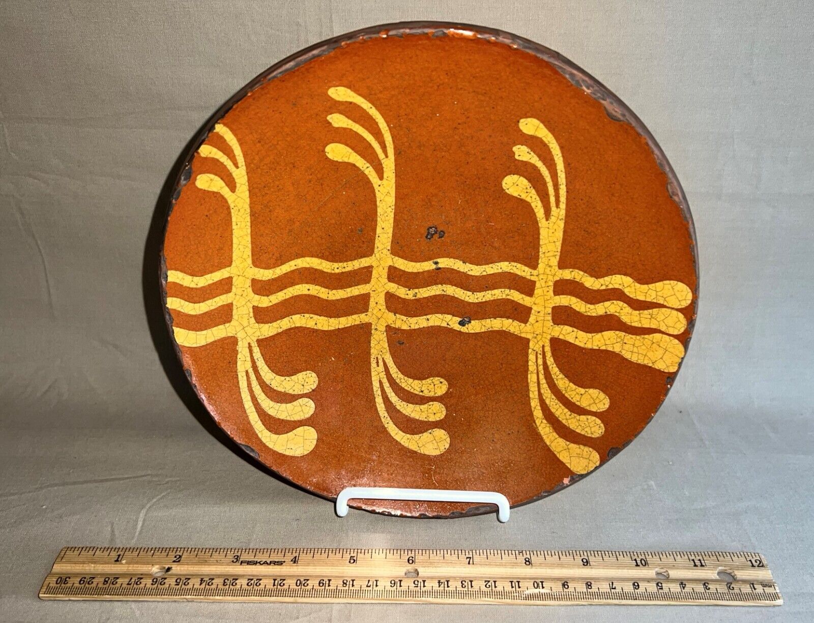Title (ebay affiliate link): Greg Shooner Pottery Redware Stoneware Slip Decorated Plate Dish Bowl 834