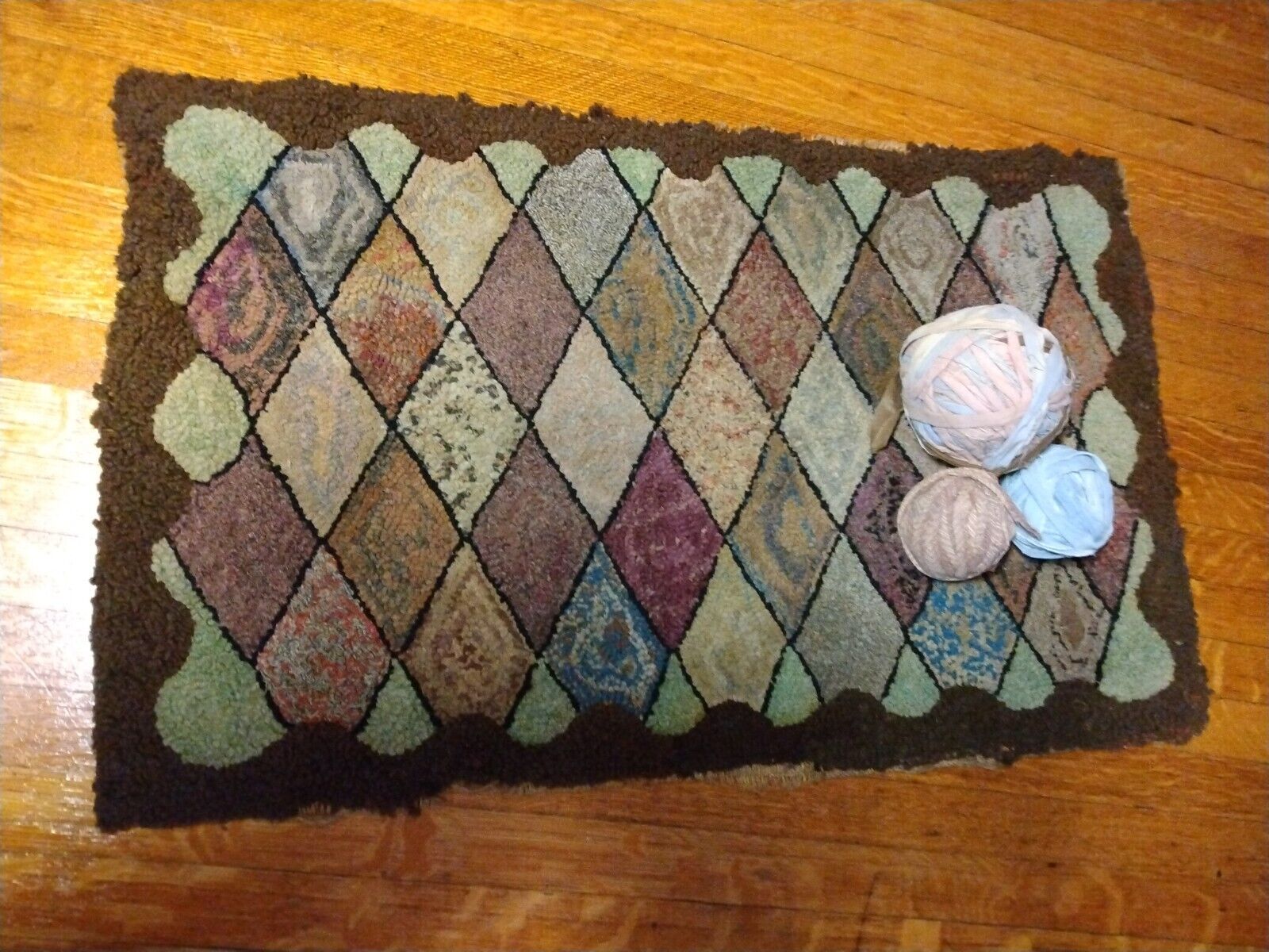 Title (ebay affiliate link): BEAUTIFUL EARLY HOOKED RUG 33 X 20 EARLY RAG BALLS