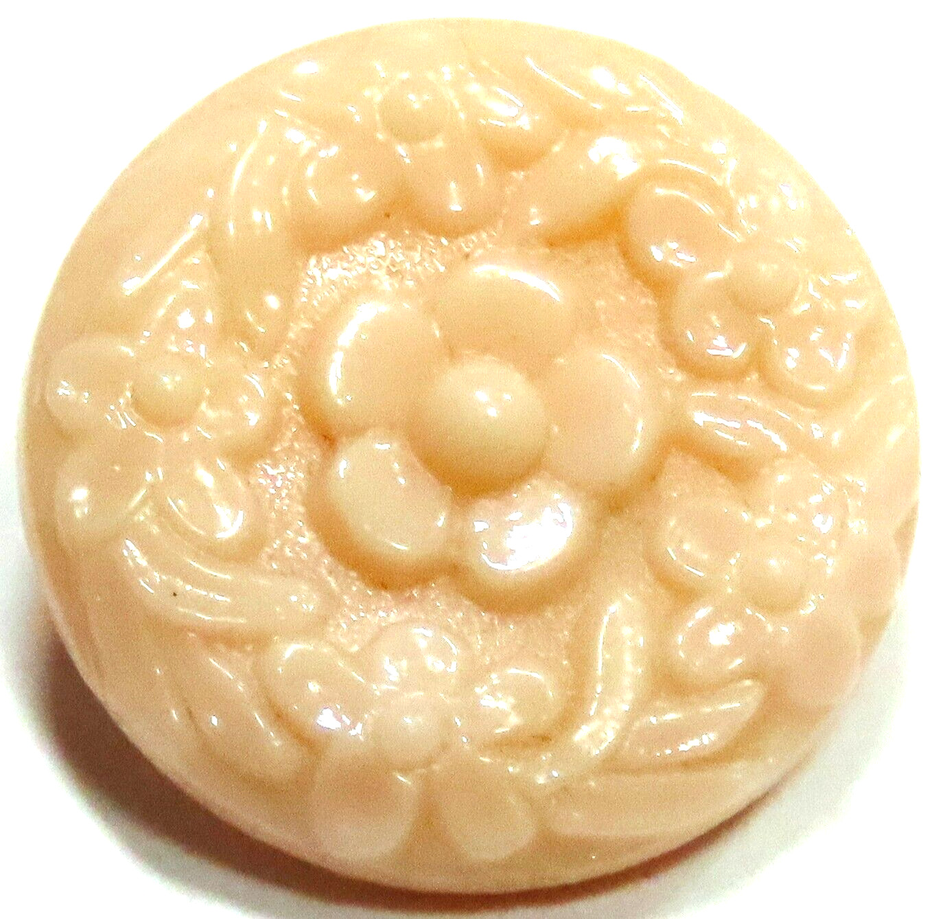 ANTIQUE FRENCH VICTORIAN PINK MILK GLASS BUTTON COVERED IN FORGETMENOTS