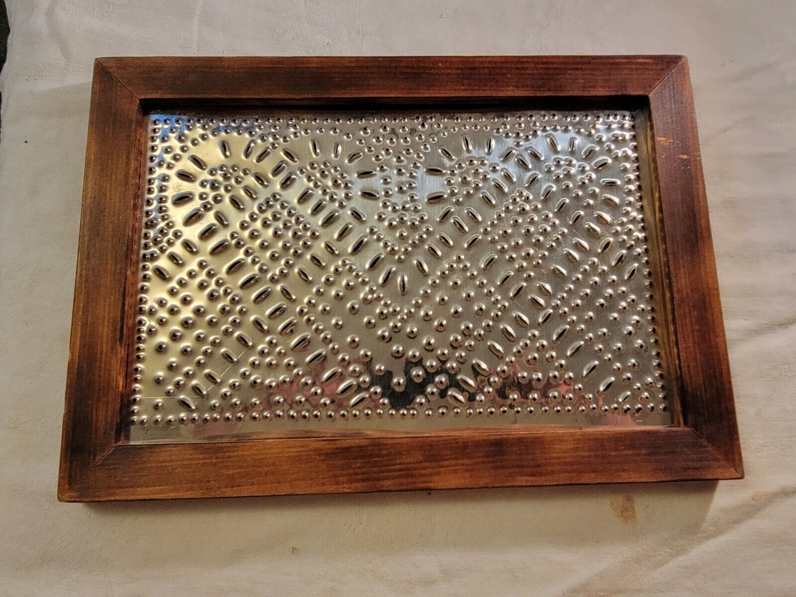 Title (ebay affiliate link): Valentines Day Gift AlertHand Punched Tin Wall Hanging with Handmade Frame