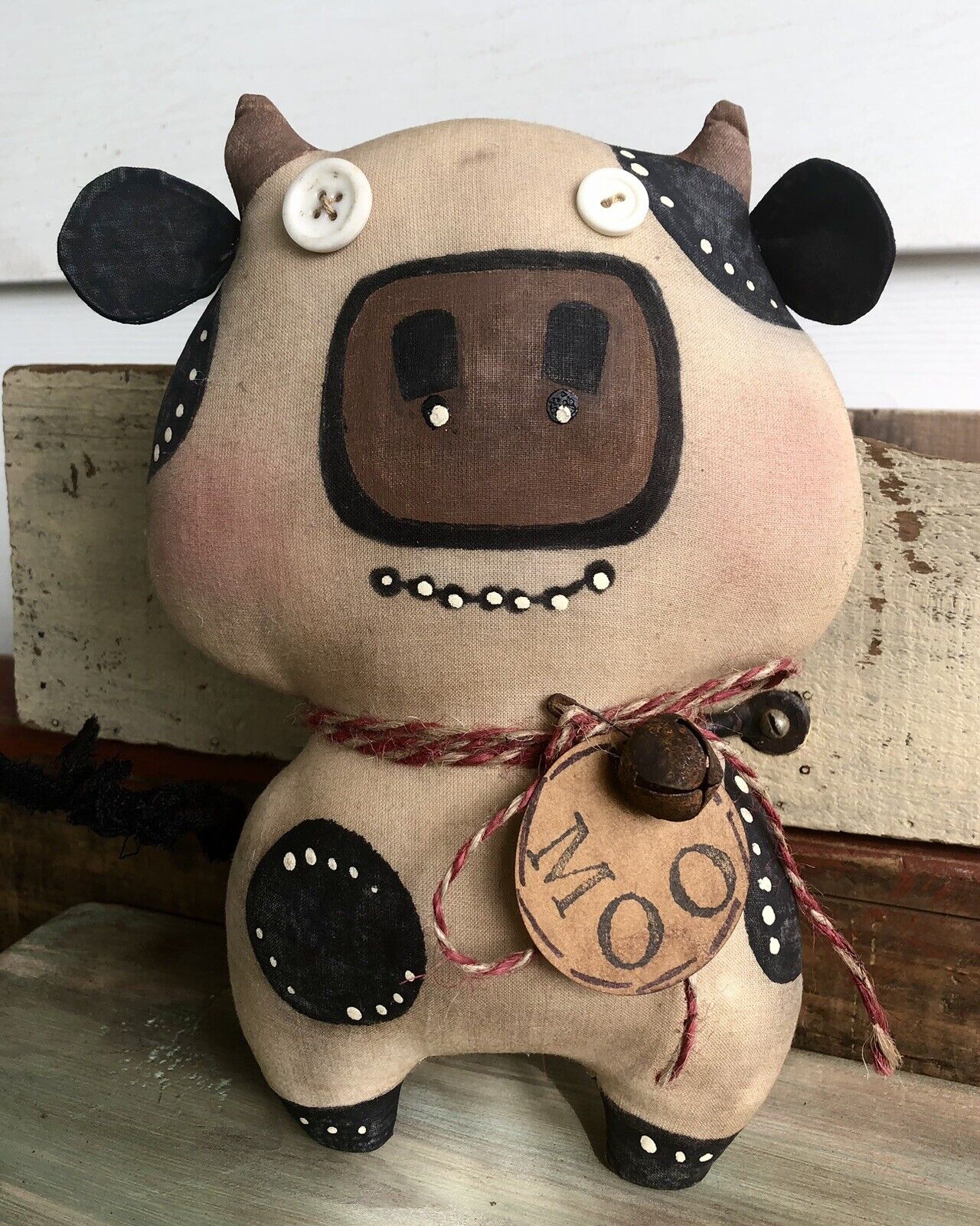 Title (ebay affiliate link): Chunky PrimitiveFolkartChunky MOO COWShelf SitterHandmade DollRustic Dec