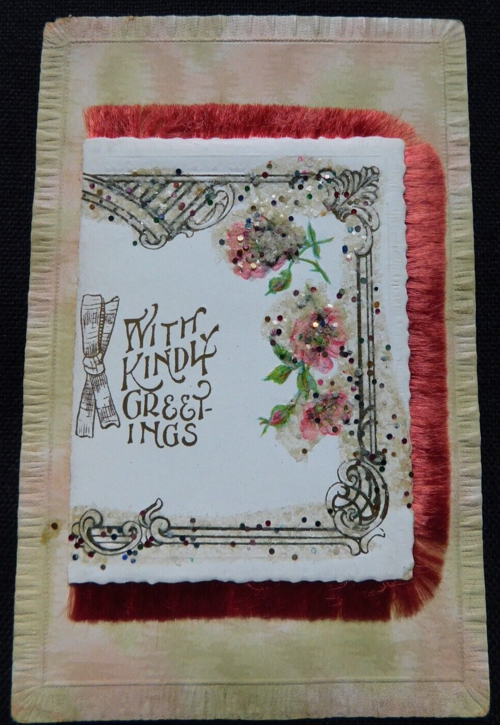 Title (ebay affiliate link): Antique greeting postcard c1910 Attached booklet w/ beads and frin