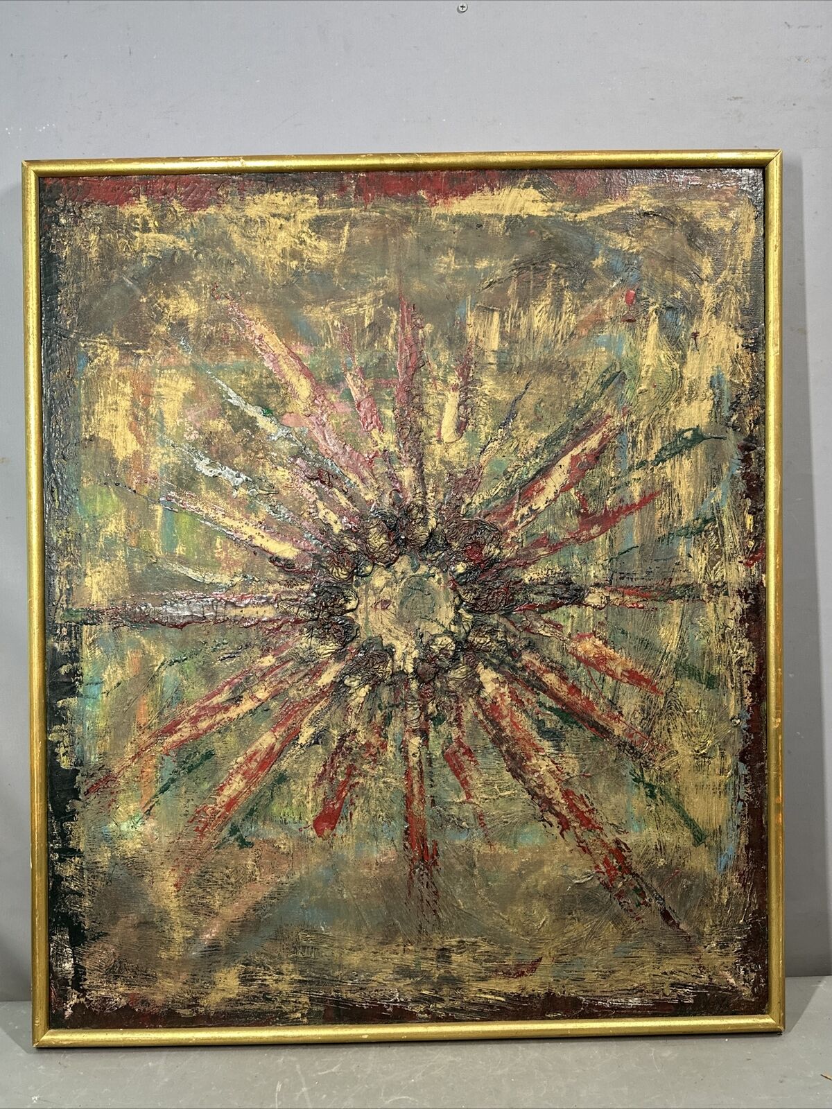Ca.1960 Vintage MCM Old ABSTRACT FLOWER / STARBURST Impasto STILL LIFE PAINTI