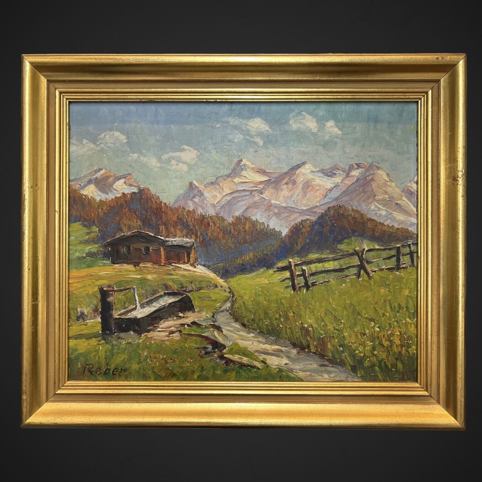 Title (ebay affiliate link): Antique Carl Reber 18701931 Switzerland Landscape Oil Painting on Boa