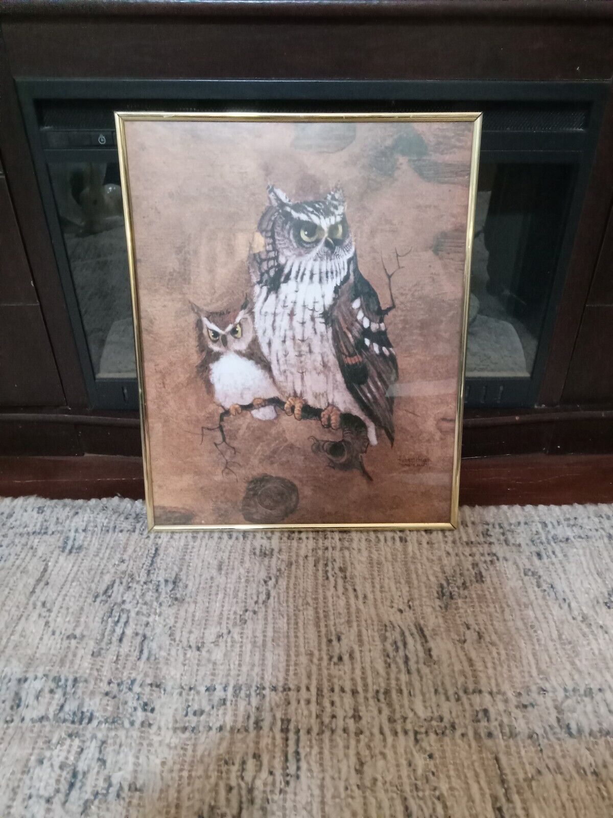 Vintage Richard Screech Owl 50s gold Framed Wall Picture Collectab