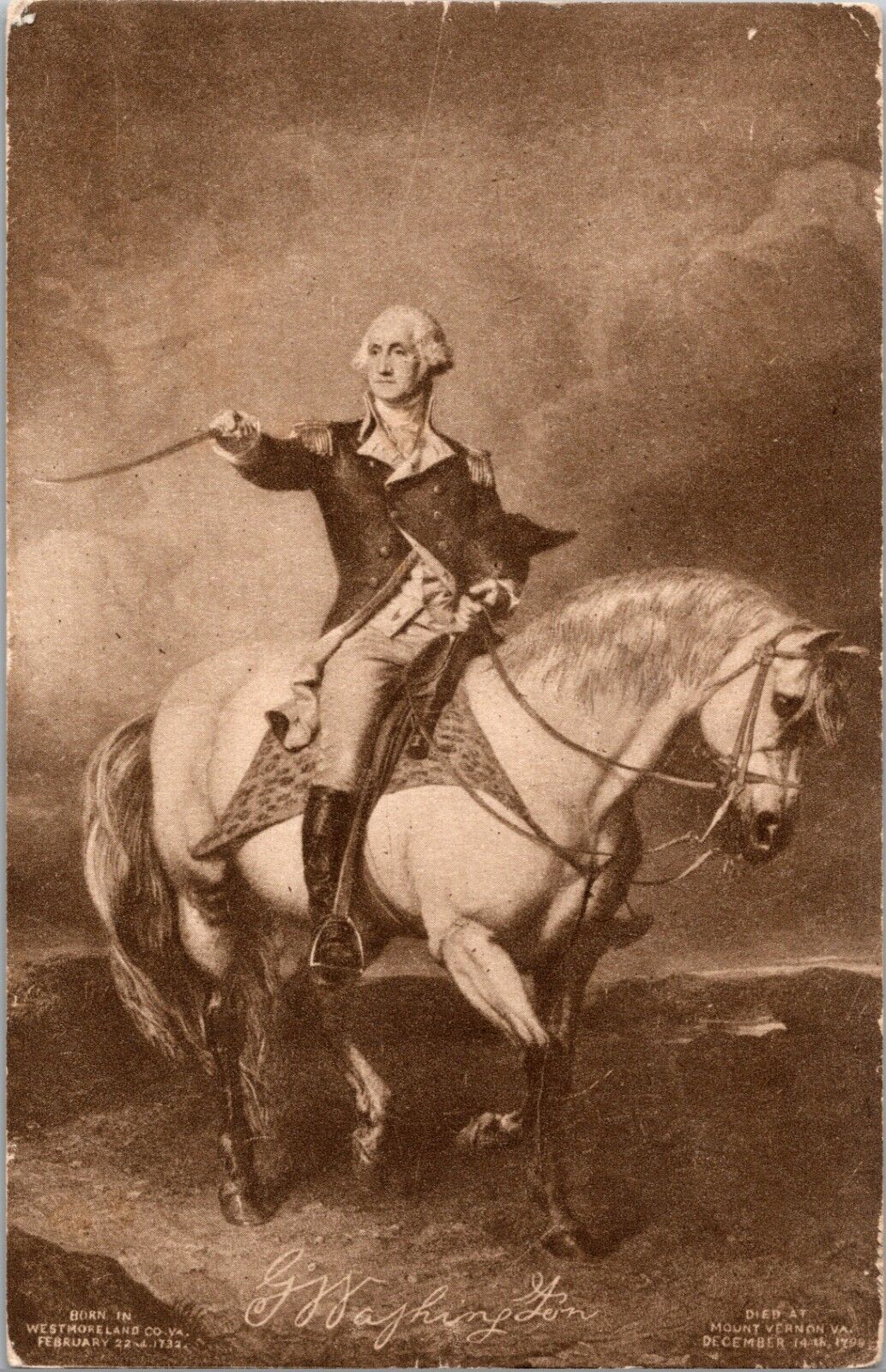 Patriotic Postcard Antique George Washington Portrait Sepia Blueskin Horse 1