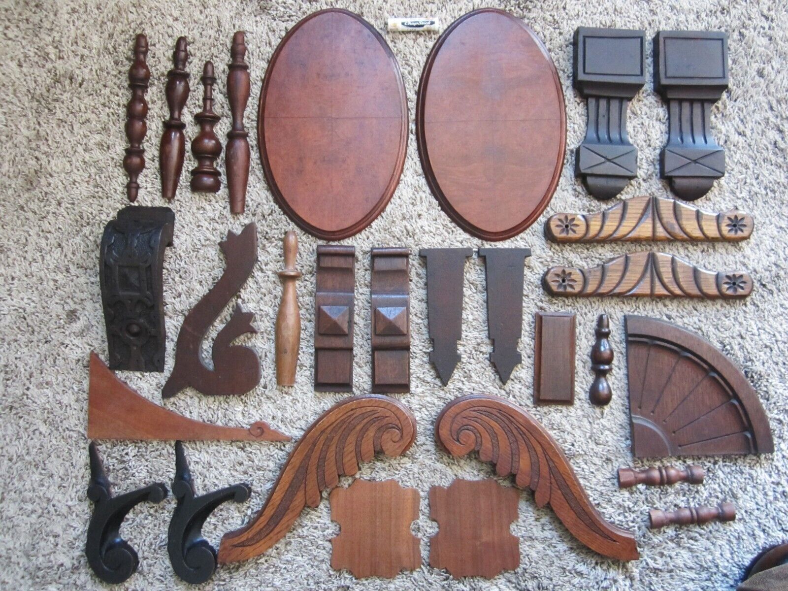 Title (ebay affiliate link): LARGE 30 Eastlake Walnut Oak Furniture Appliques Victorian Wood Parts Pane