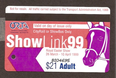 SYDNEY BUSES 1999 $21 SHOWLINK BUS - RAIL TICKET