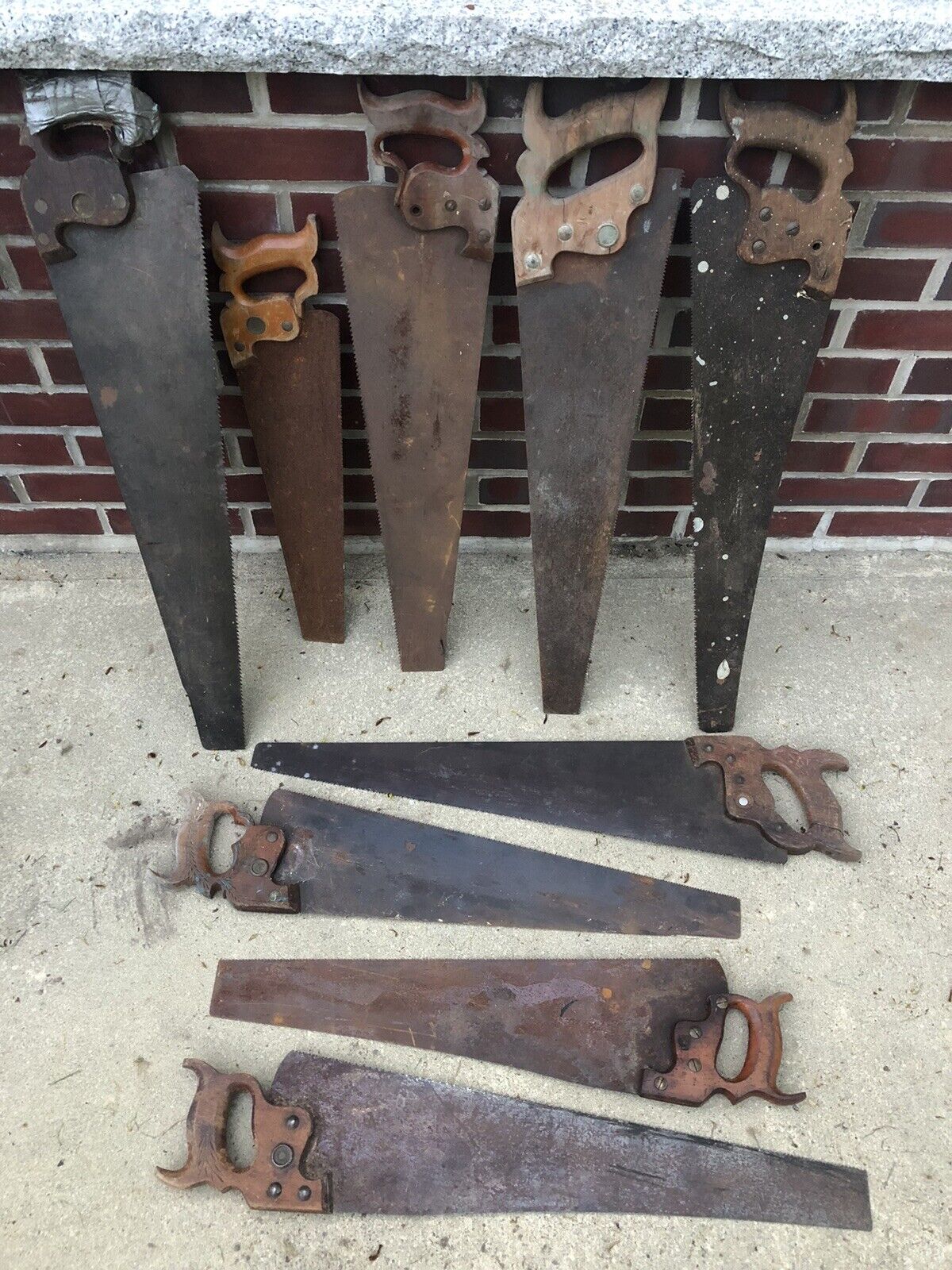 Title (ebay affiliate link): 9 PC VTG Antique Saw Saws Lot Woodsaw Woodworking Rusty Disston Etc. Restorati