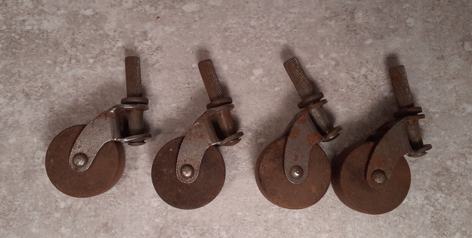 Set of 4 Furniture Dresser Casters Wood Swivel Rollers Antique Vintage Old Whe