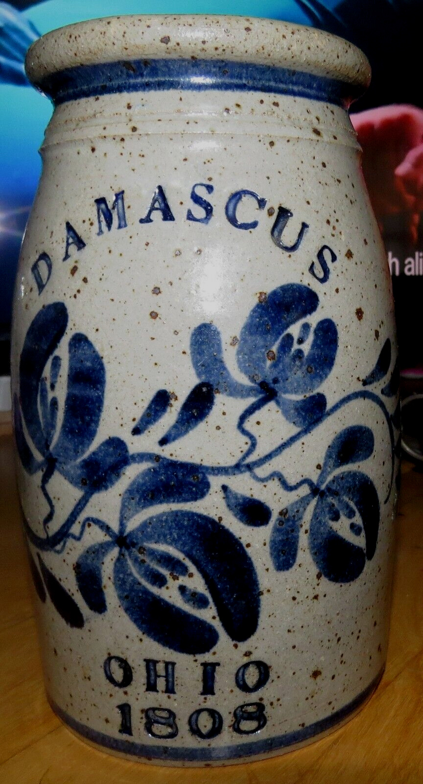 Title (ebay affiliate link): DAMASCUS OHIO 1808 SALT GLAZED COBALT BLUE 8 1/234 H STONEWARE CROCK SIGNED Q