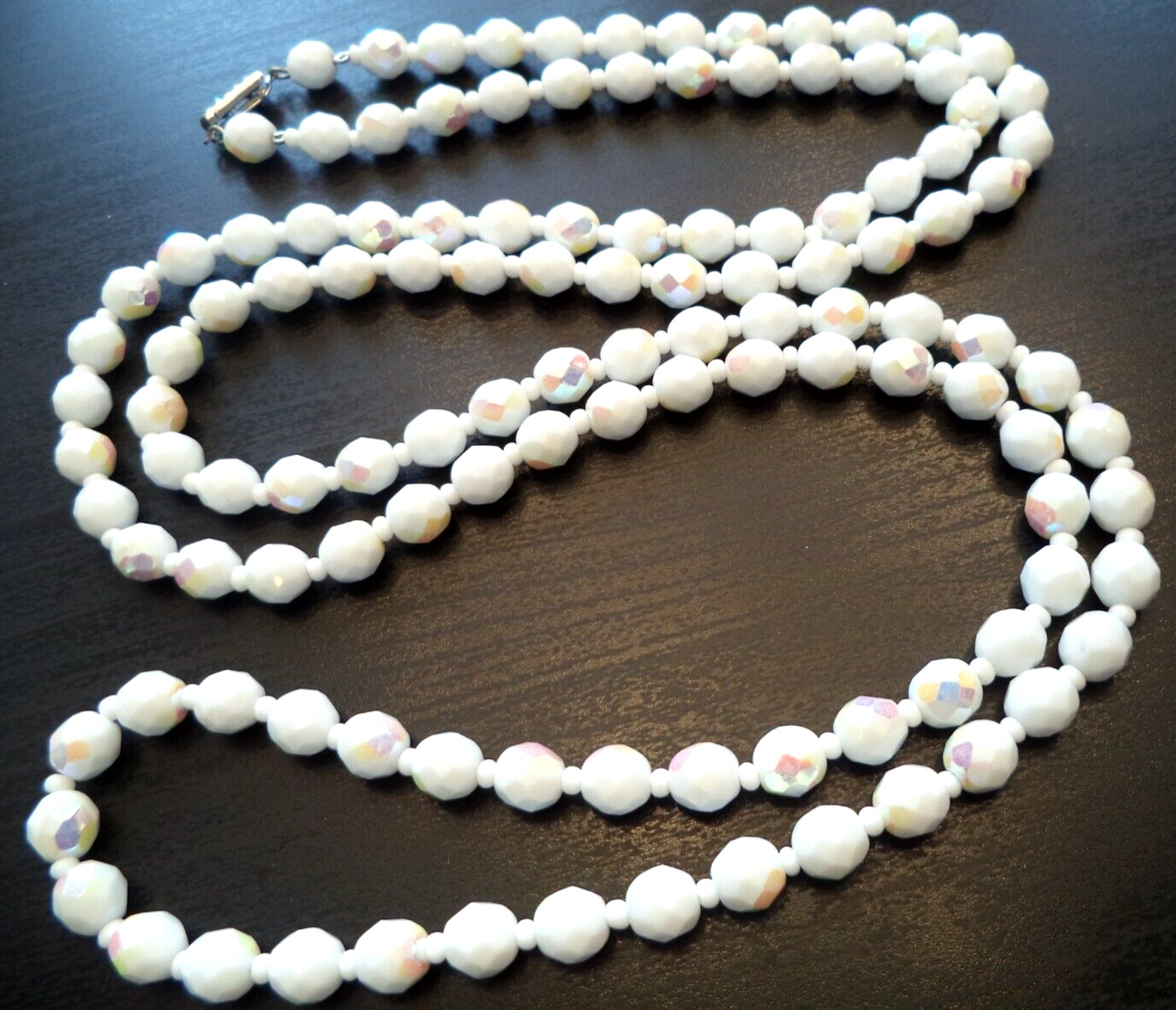STUNNING VINTAGE ESTATE HIGH END IRIDESCENT MILK GLASS BEAD 4834 NECKLACE G66