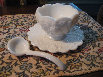 Vintage Westmoreland Milk Glass 3 Pc Mayo Set, COMPLETE