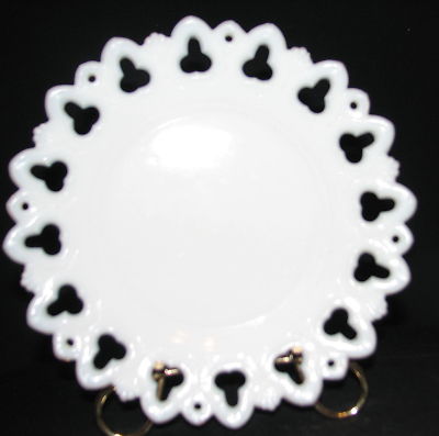 LACE EDGE CLOVER PATTERN WHITE MILK GLASS PLATE 8"