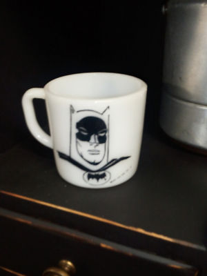 VINTAGE 1966 BATMAN MILK GLASS COFFEE MUG