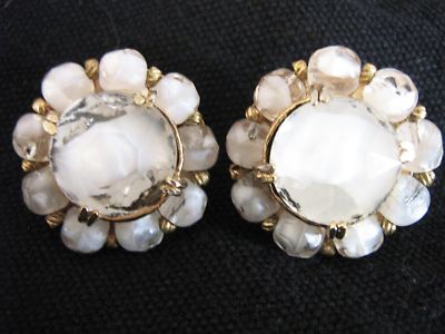 Hattie Carnegie Vintage Earrings ~ Milk White Glass