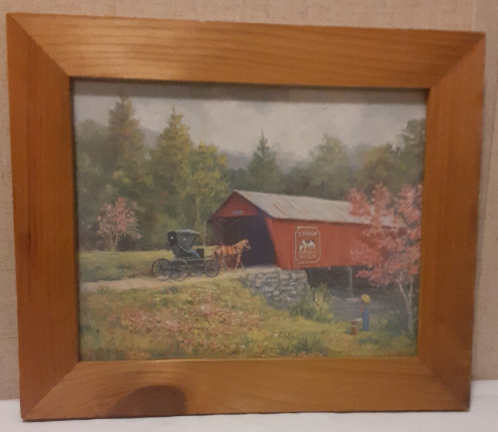 Antique VTG 70s 80s Oil or Watercolor Painting? Bridge Landscape 10x12 Sign