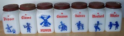 Vintage Dutch scene-Frank's Spice Jars-Milk Glass