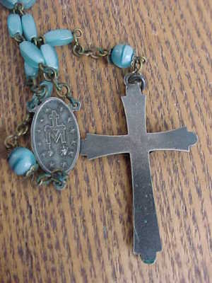 Vintage Light Blue Milk Glass Oblong Rosary Sterling?