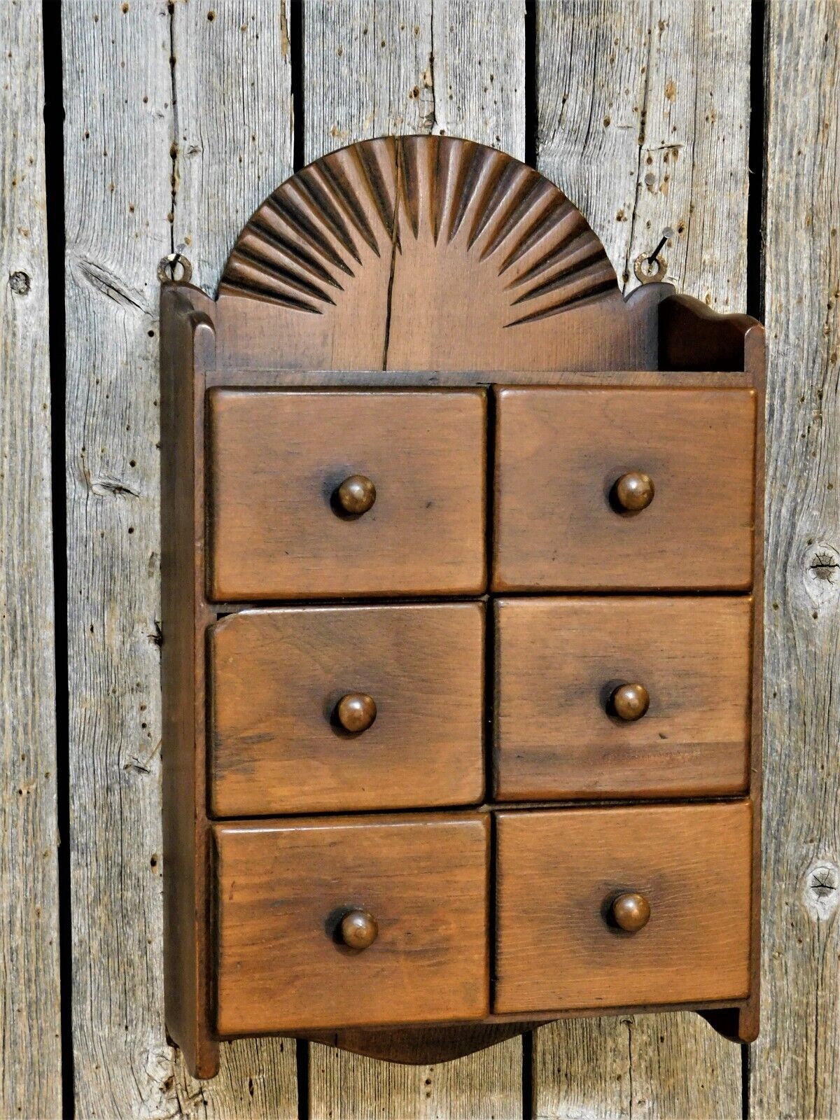 Title (ebay affiliate link): Antique Primitive Wooden 6 Drawer Spice Cabinet with Dama