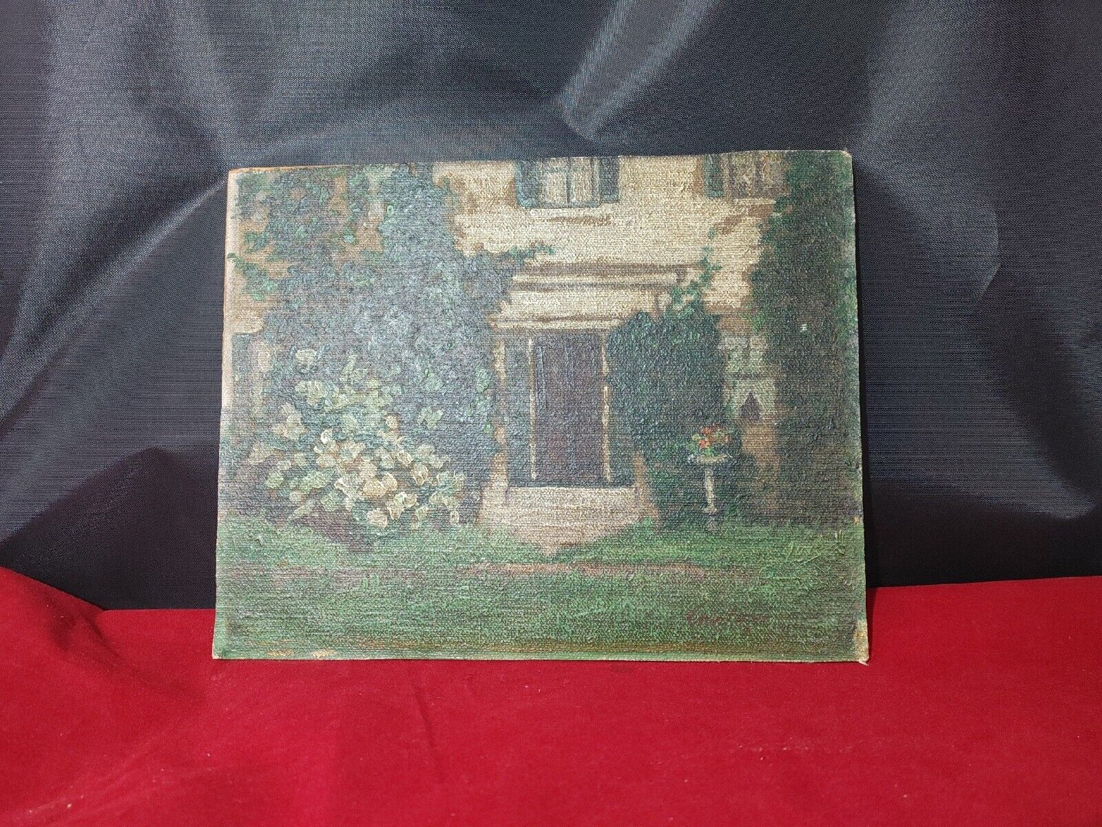 Title (ebay affiliate link): Antique Oil / Canvas on Board Painting Beautiful Entry Way Bird Bath Sign