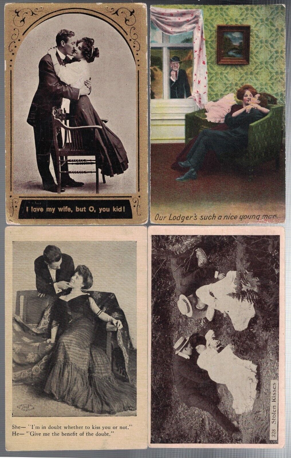 4 ANTIQUE 19071910 VICTORIAN ROMANCE COMIC RISQUE POSTCA