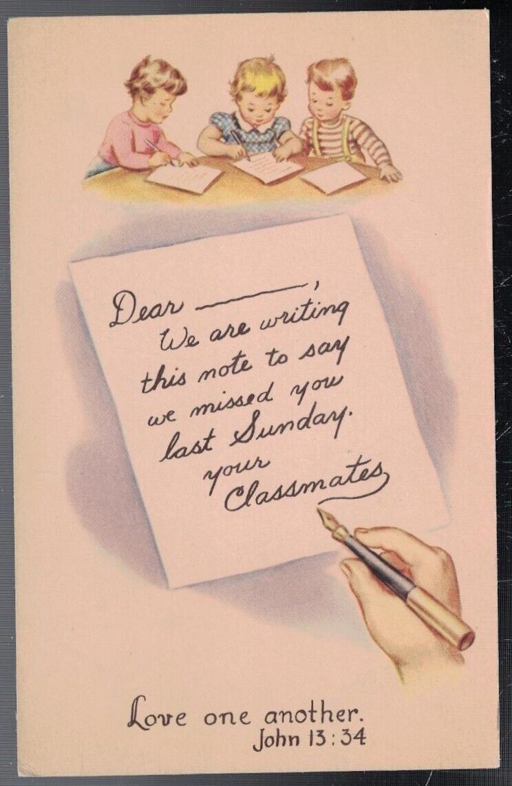 ANTIQUE SUNDAY SCHOOL RALLY DAY KIDS WRITING LETTERS LOVE ON ANOTHER POSTCA