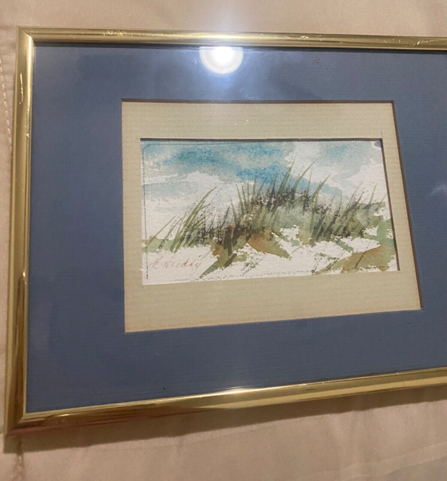 Miniature Watercolor Painting Vintage Beach Dunes North Carolina Huddy Fram
