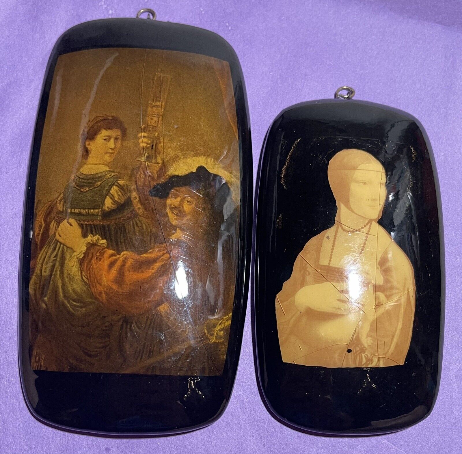 Large Antique Painting Pendants Lacquer.