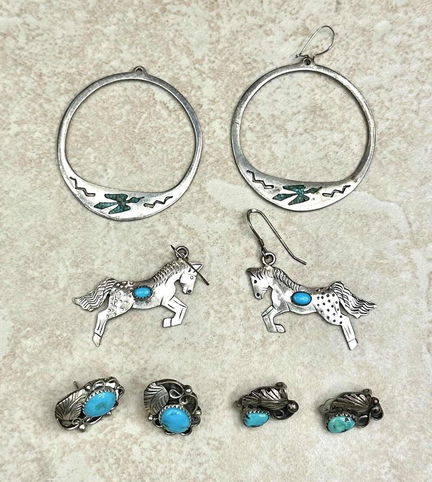 Title (ebay affiliate link): 4 pairs Signed Sterling Silver Native American Turquoise Earrings weight 3