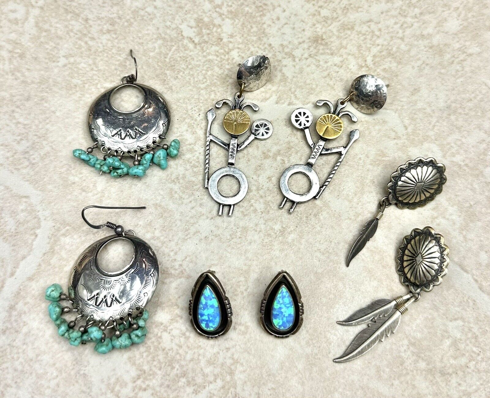 Title (ebay affiliate link): 4 pairs Signed Sterling Silver Native American Turquoise Earrings weight 3