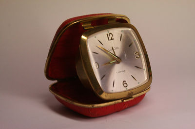 Antique decorative wind up table alarm clock red