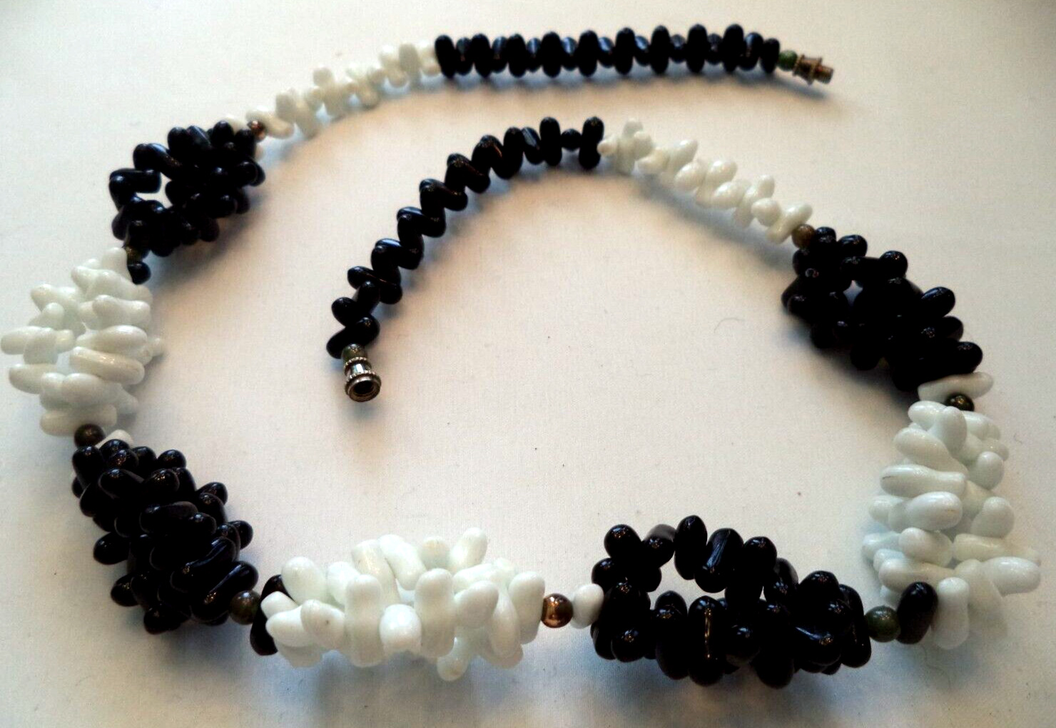 Title (ebay affiliate link): STUNNING VINTAGE ESTATE HIGH END JET MILK GLASS BEAD 2034 NECKLACE G69