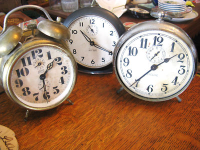 3 VINTAGE ANTIQUE ALARM CLOCKS LOT FOR PARTS BIG OLD