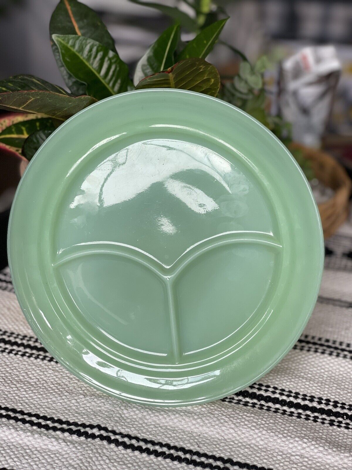 Title (ebay affiliate link): Jadeite Fire King Oven Ware Divided Plate 3 Section Thick Hea