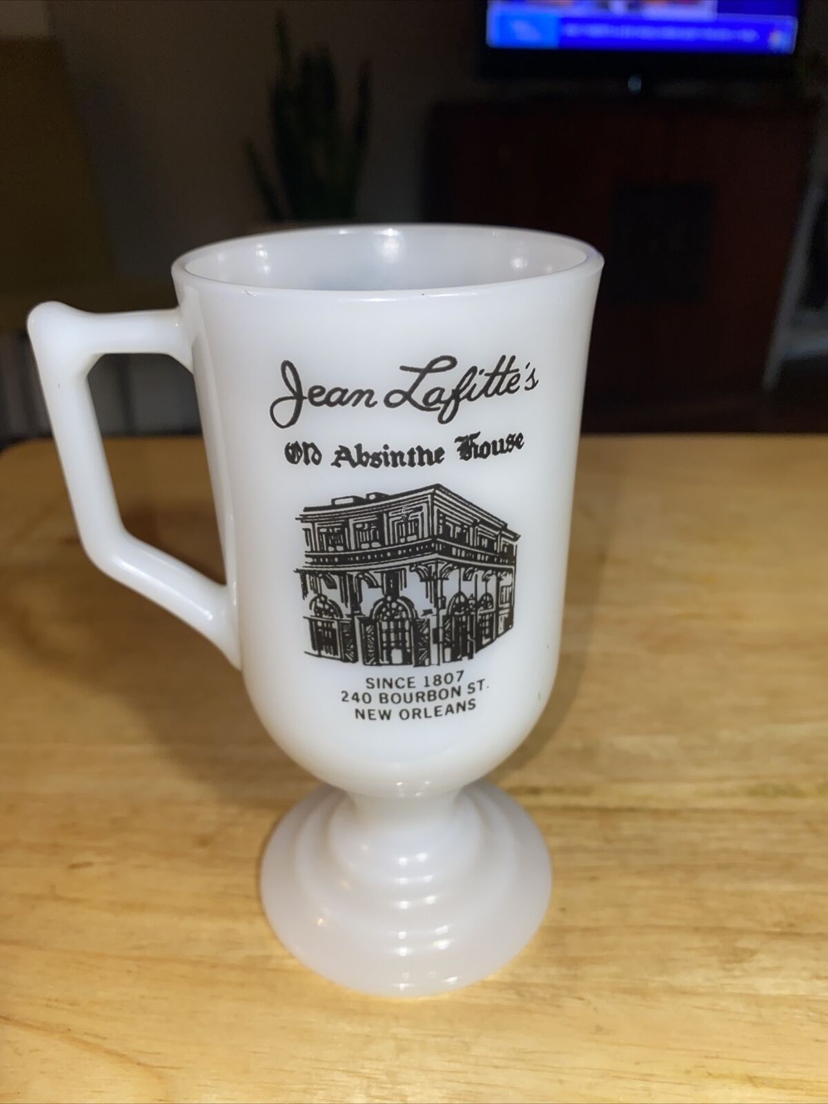 Vintage Jean Lafittes Old Absinthe House Milk Glass Pedestal Footed Mug Cu