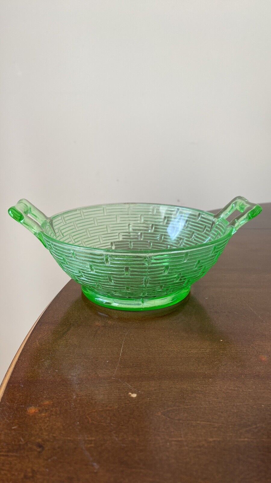 Title (ebay affiliate link): Vintage Green Depression Uranium Glow Glass Bowl Basket Weave Pattern Di