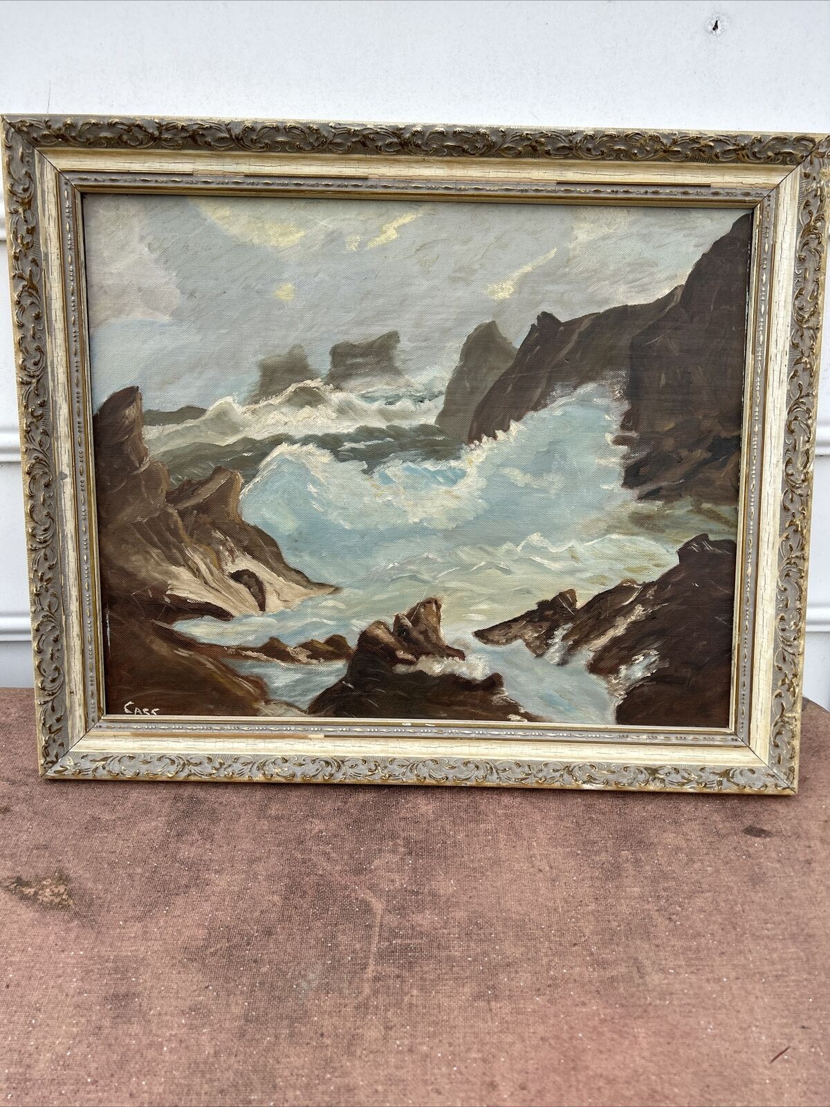 Antique ORIGINAL OIL PAINTING by Cass sign