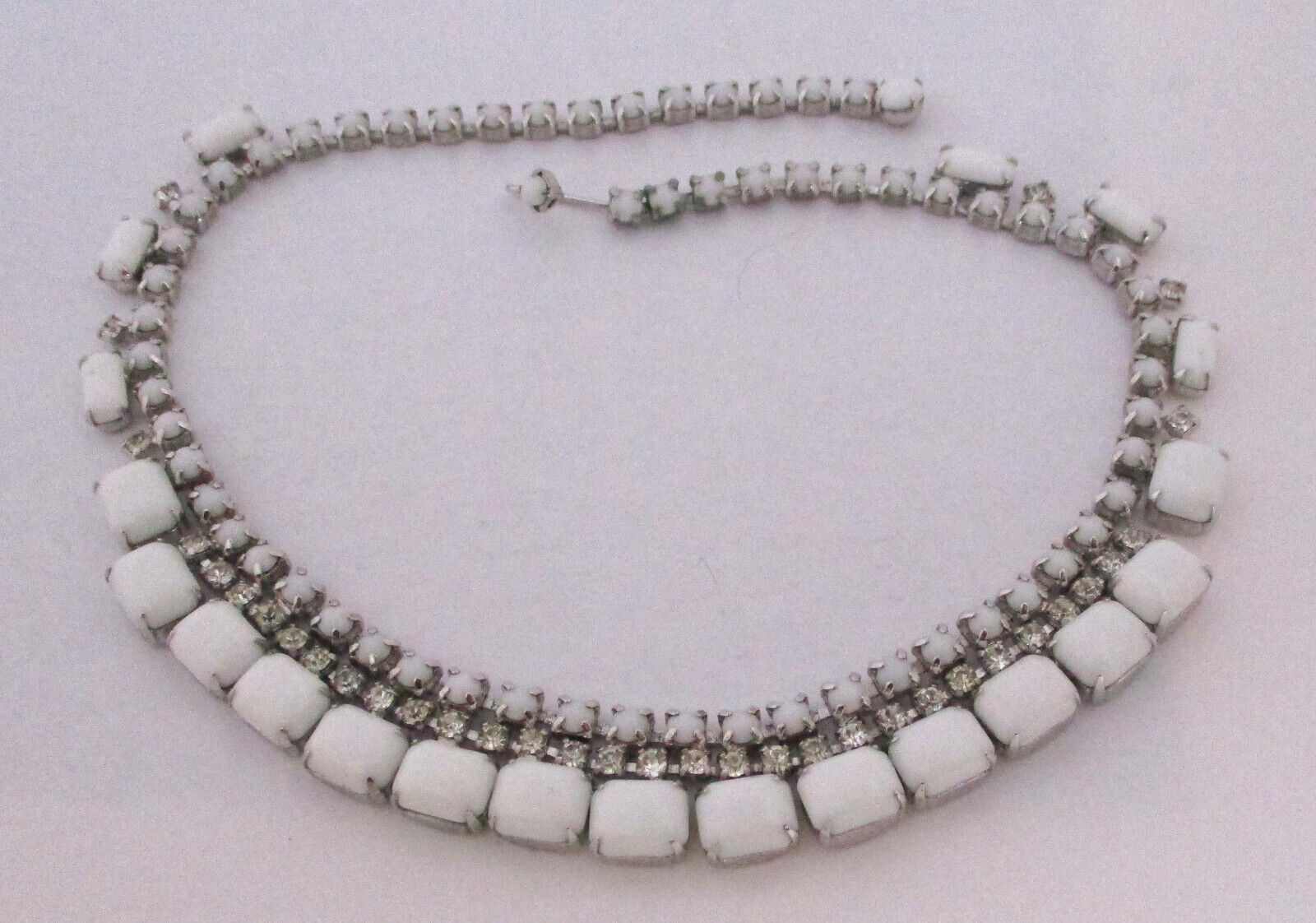 Vintage Milk Glass Cabochon/Crystal Rhinestone Neckla