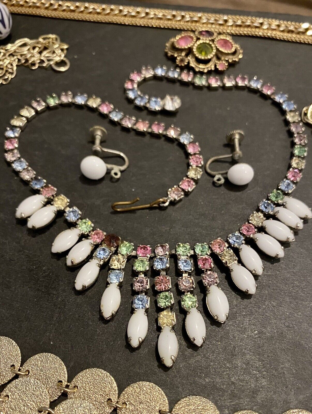 Title (ebay affiliate link): Antique Vintage Jewelry REPAIR Lot MilkglassPastel RhinestoneSarah Covent