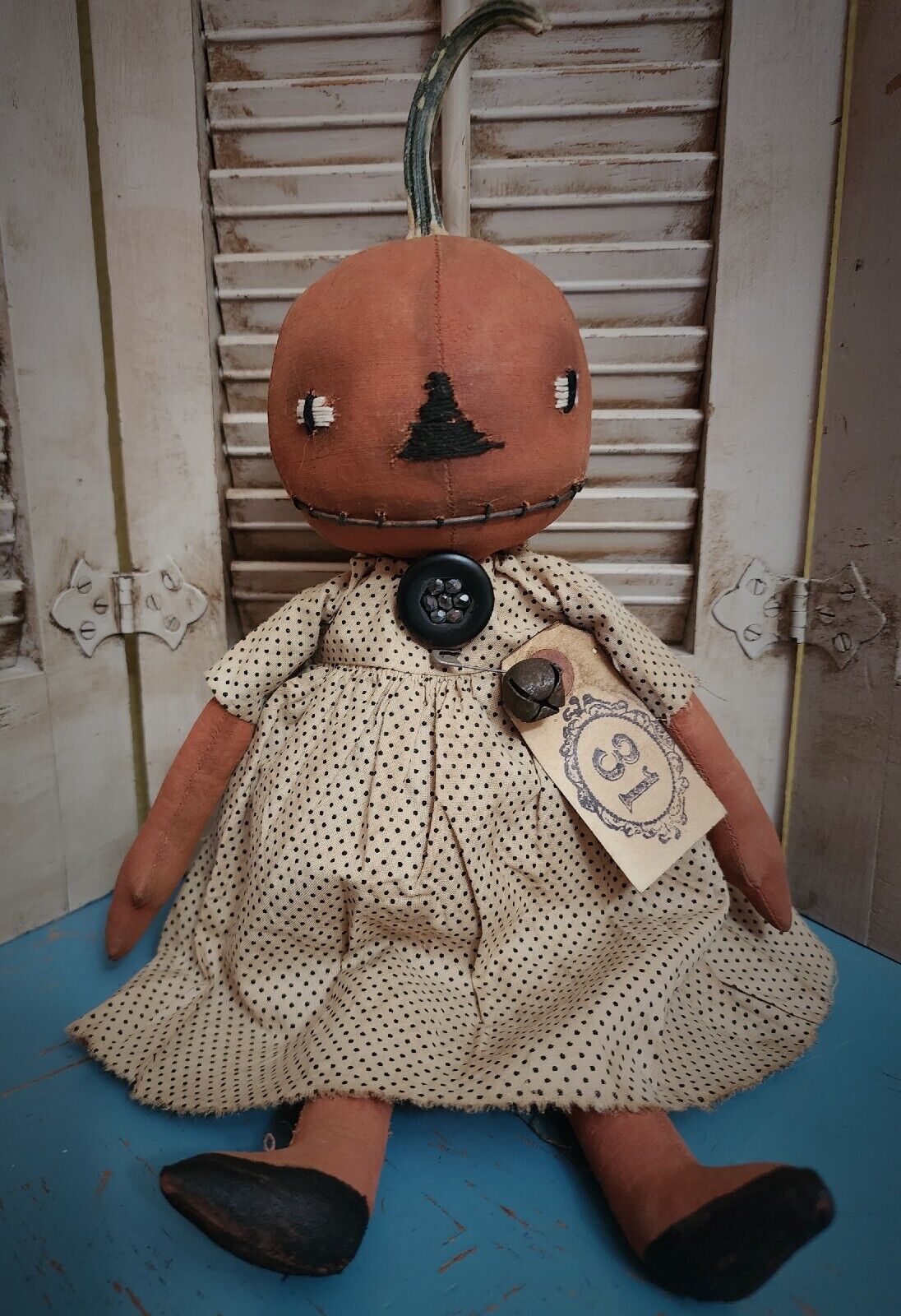 Title (ebay affiliate link): Primitive Little Pumpkin Doll Halloween Real Dried Stem