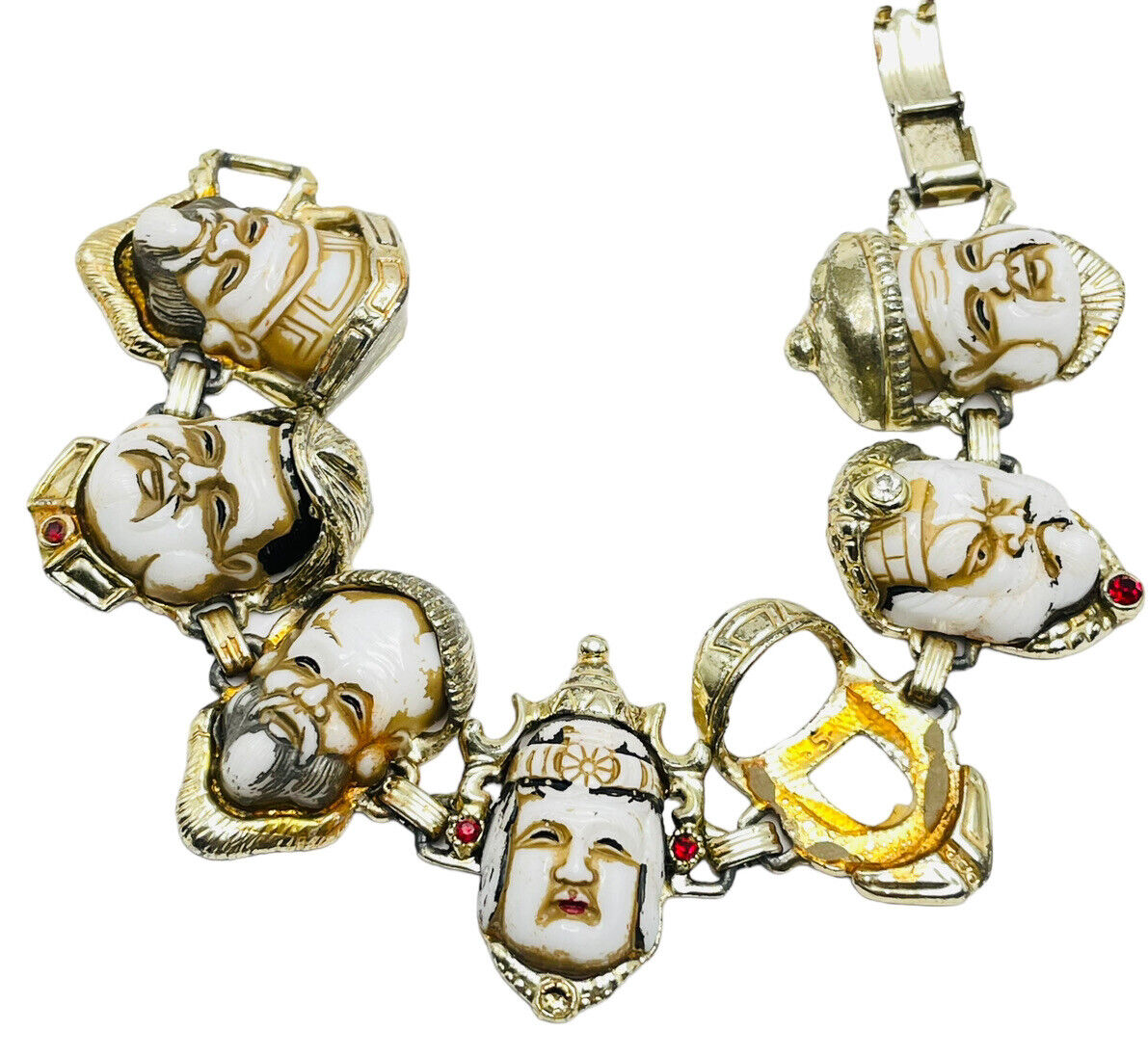 Vintage Milk Glass Asian Seven Gods Fortune Selro Like Bards 1959 Bracel