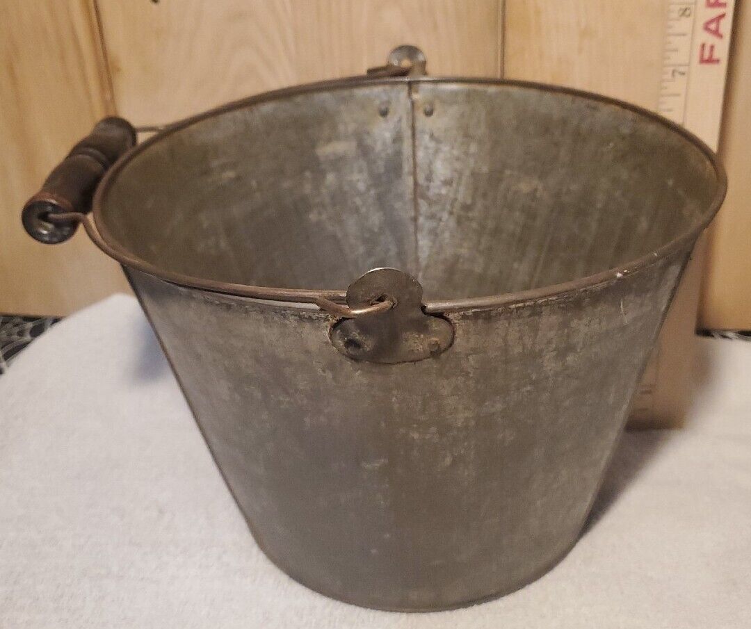 Antique Tin Bucket W/ Handle Great displ
