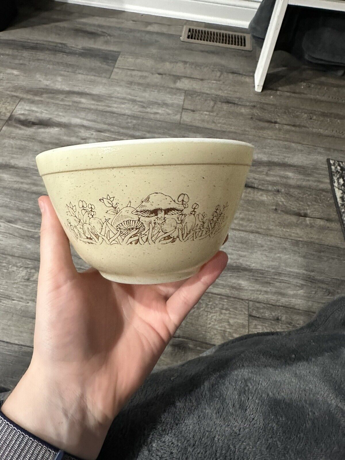 SWEET VINTAGE PYREX MILK GLASS FOREST FANCIES MUSHROOM MIXING BOWL 4