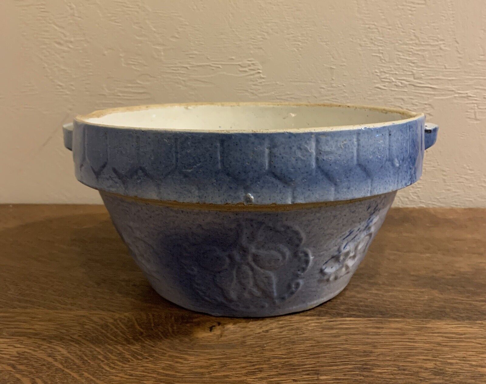 Large Antique Primitive Salt Glaze Stoneware Bowl Blue/White Nice Condition