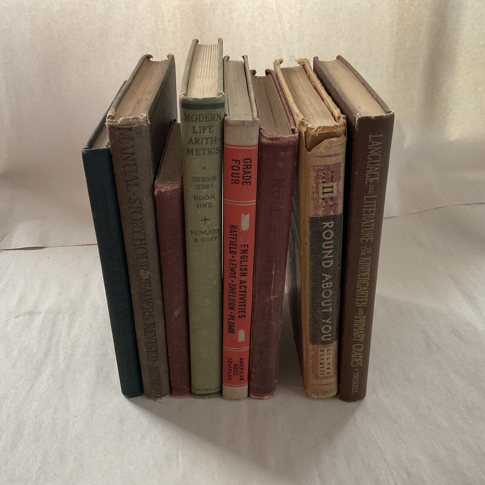 Title (ebay affiliate link): Lot of 8 Antique SCHOOL BOOKS Arithmetic Reader Prop Shelf Decor 1894 19