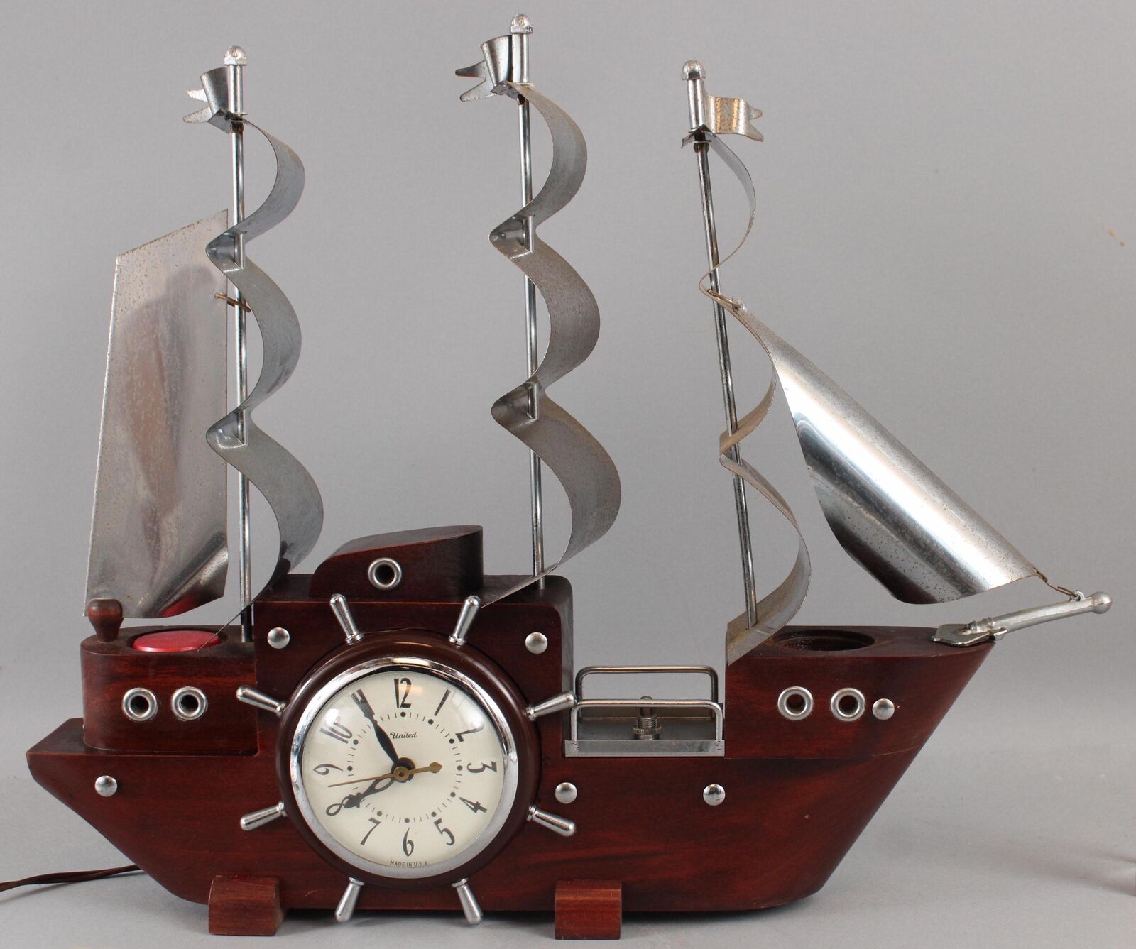 Title (ebay affiliate link): Vintage 1960s MidCentury Nautical Sailing Ship Mahogany Chrome TV Lamp Clock